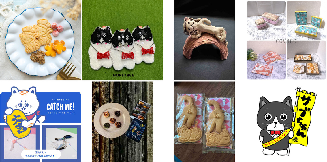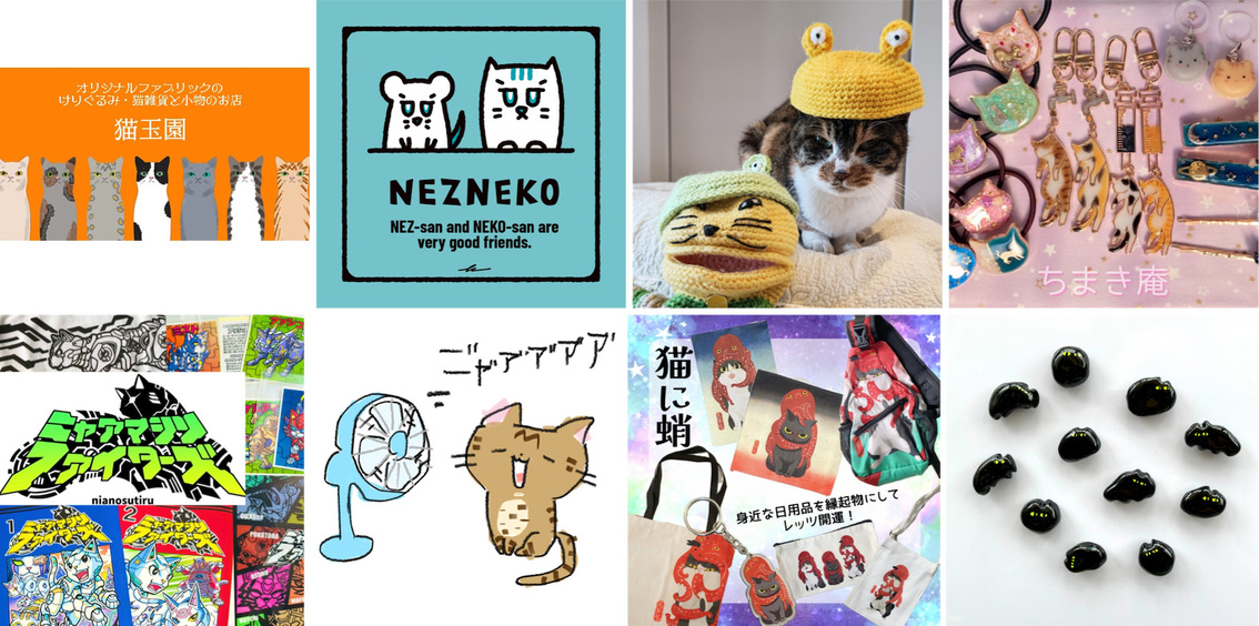 ねこモチーフのグッズ・お菓子やクリエイターさんの作品などがズラリと並びます。