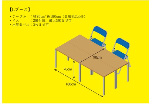 ・追加イスは各ブースの最大数まで設置できます。当日スタッフへお声掛けください。
