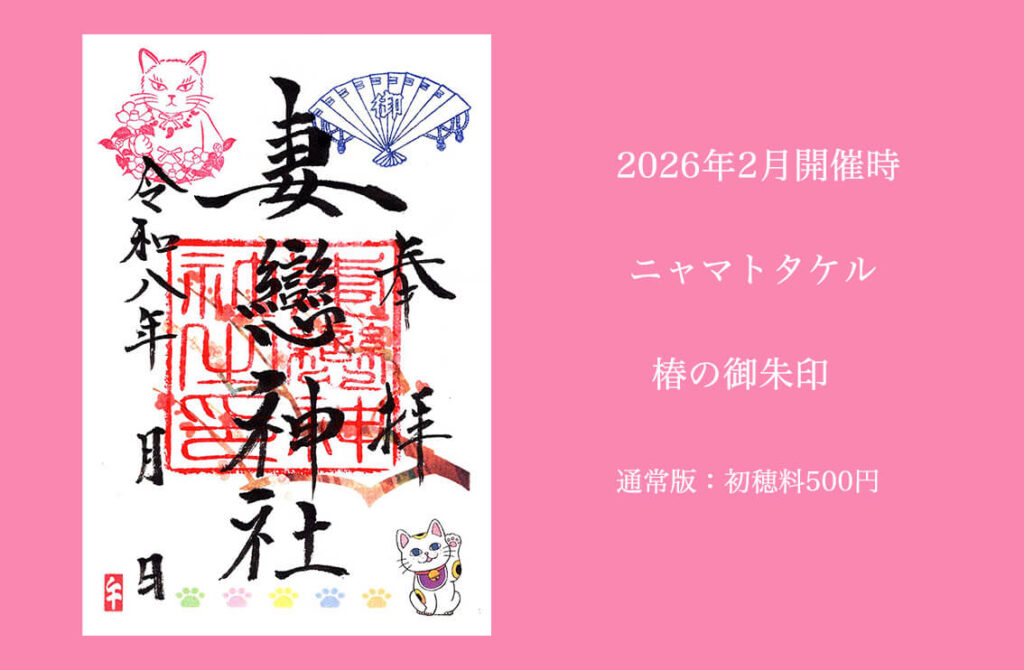 また、妻恋神社では期間中土曜日限定のねこまつり御朱印を特別に猫の日にも頒布いたします!